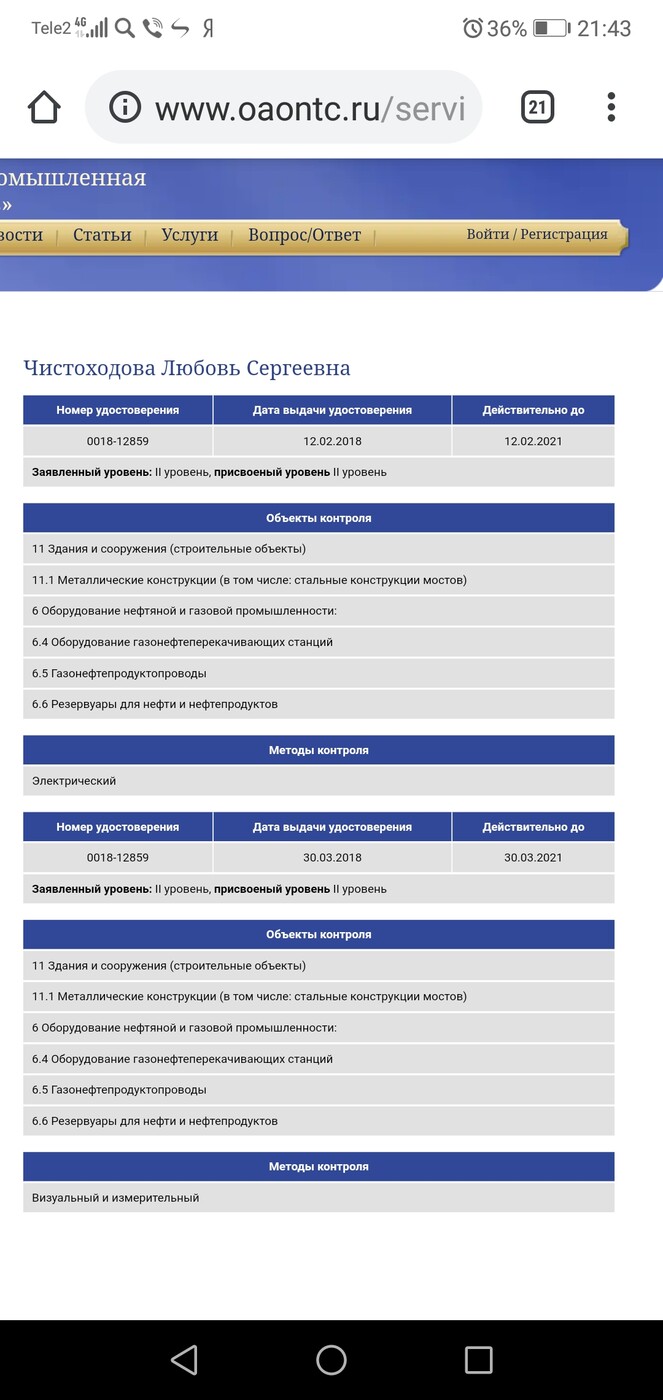 Аттестована по ВИК и электроконтролю.
